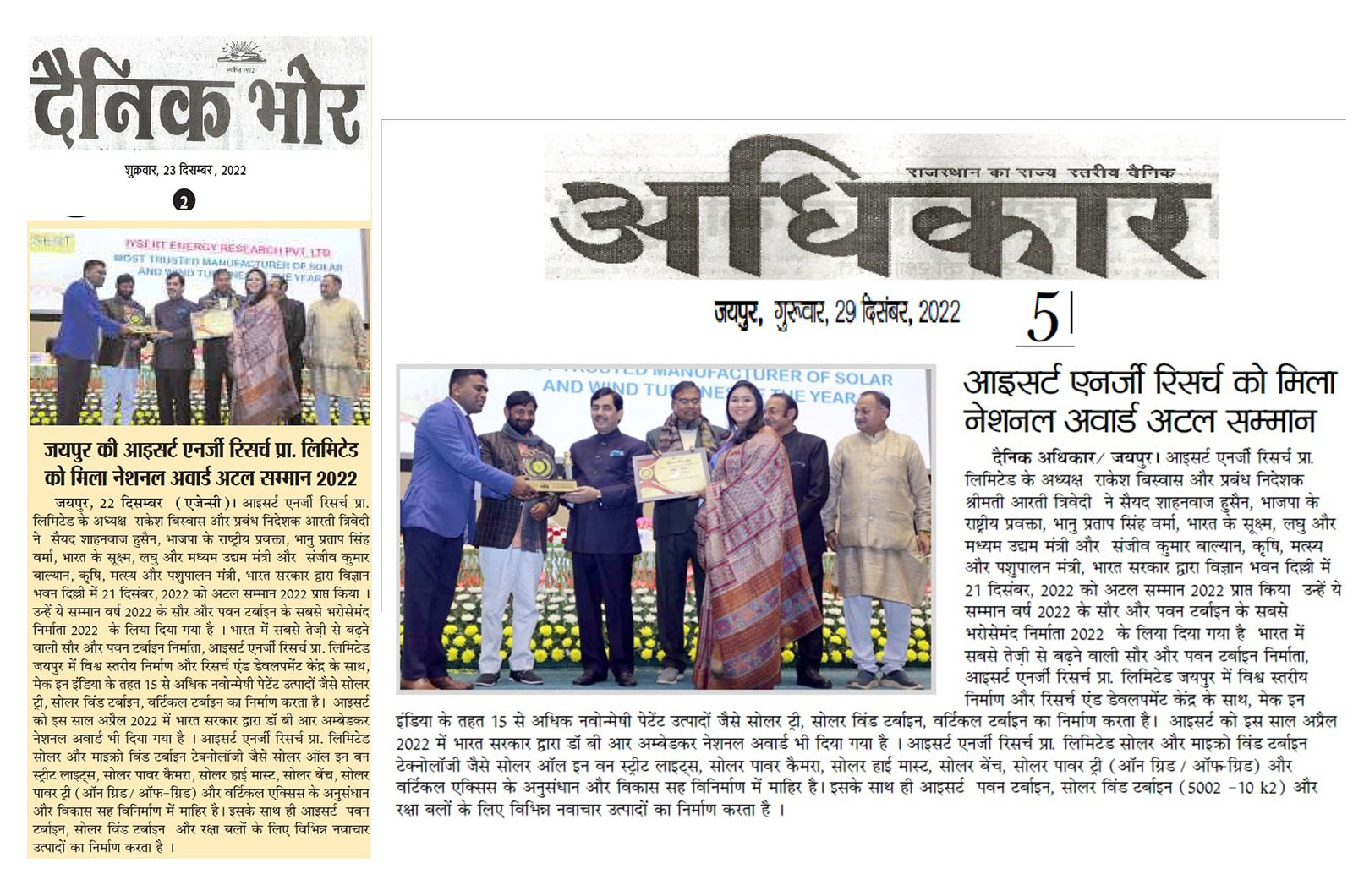 IYSERT RECEIVED NATIONAL AWARD BY GOVERNMENT OF INDIA 2022