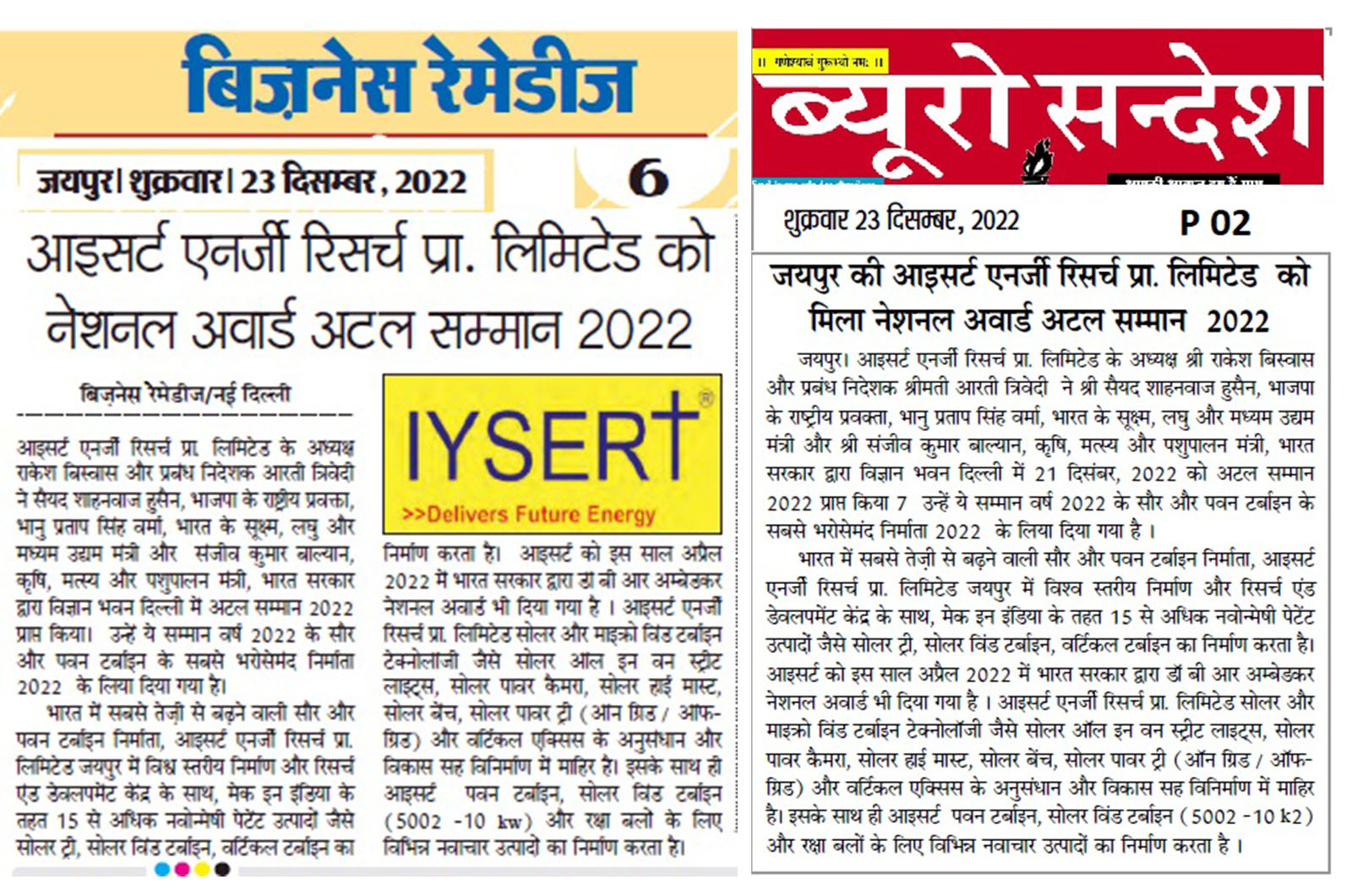 IYSERT RECEIVED NATIONAL AWARD BY GOVERNMENT OF INDIA 2022